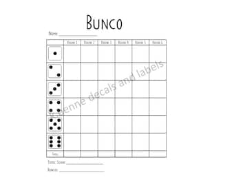 Bunco Score Card Printable Bunco Score Card Bunco Score Etsy