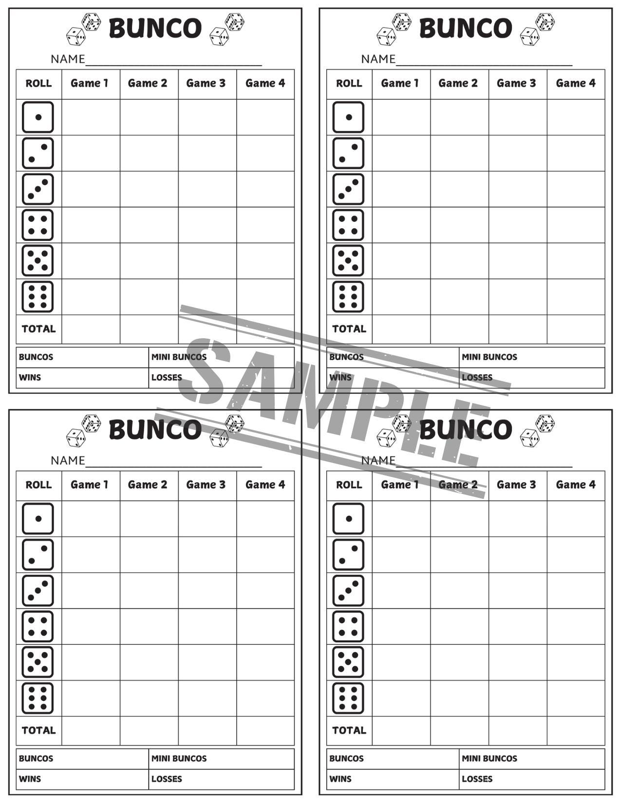 Bunco Score Sheets 4 in 1 Printable Bunco Cards Printable File