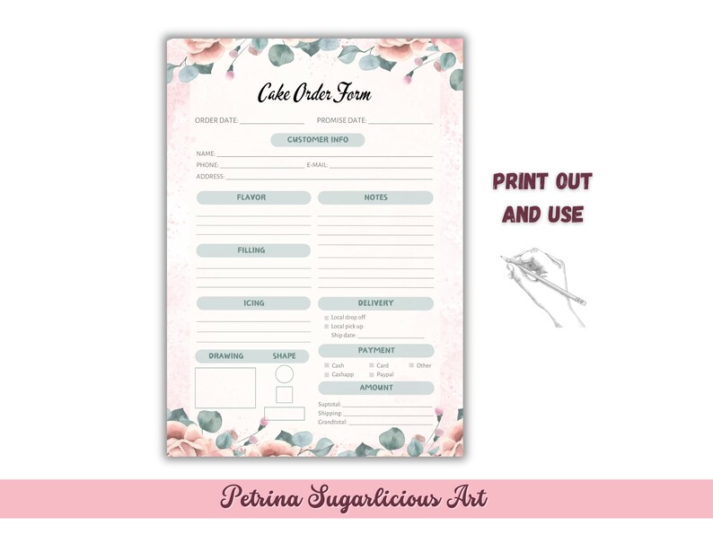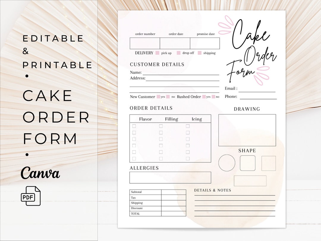 Editable CAKE ORDER FORM Printable Cake Order Form Template Etsy