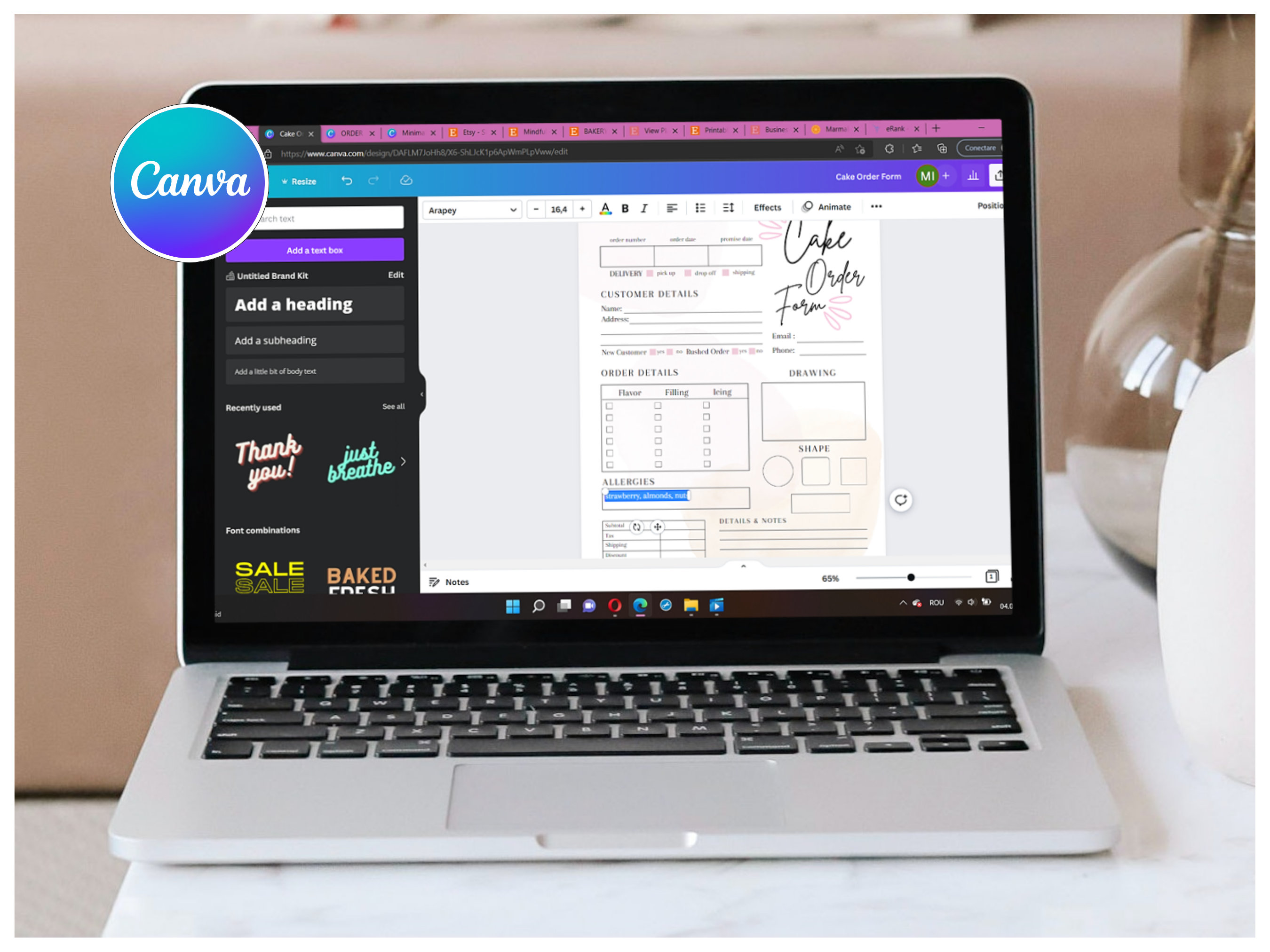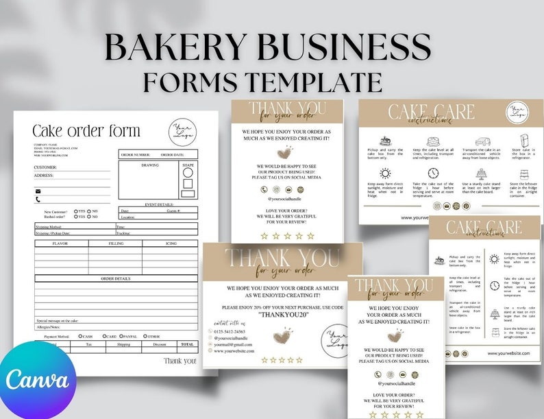 Editable and Printable Cake Order Form and Cake Care Card Bakery Thank