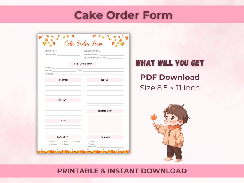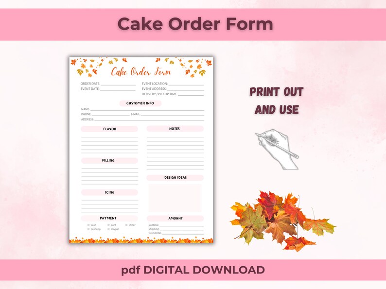 Printable Autumn Cake Order Form Cookie Order Form Muffin Order Form
