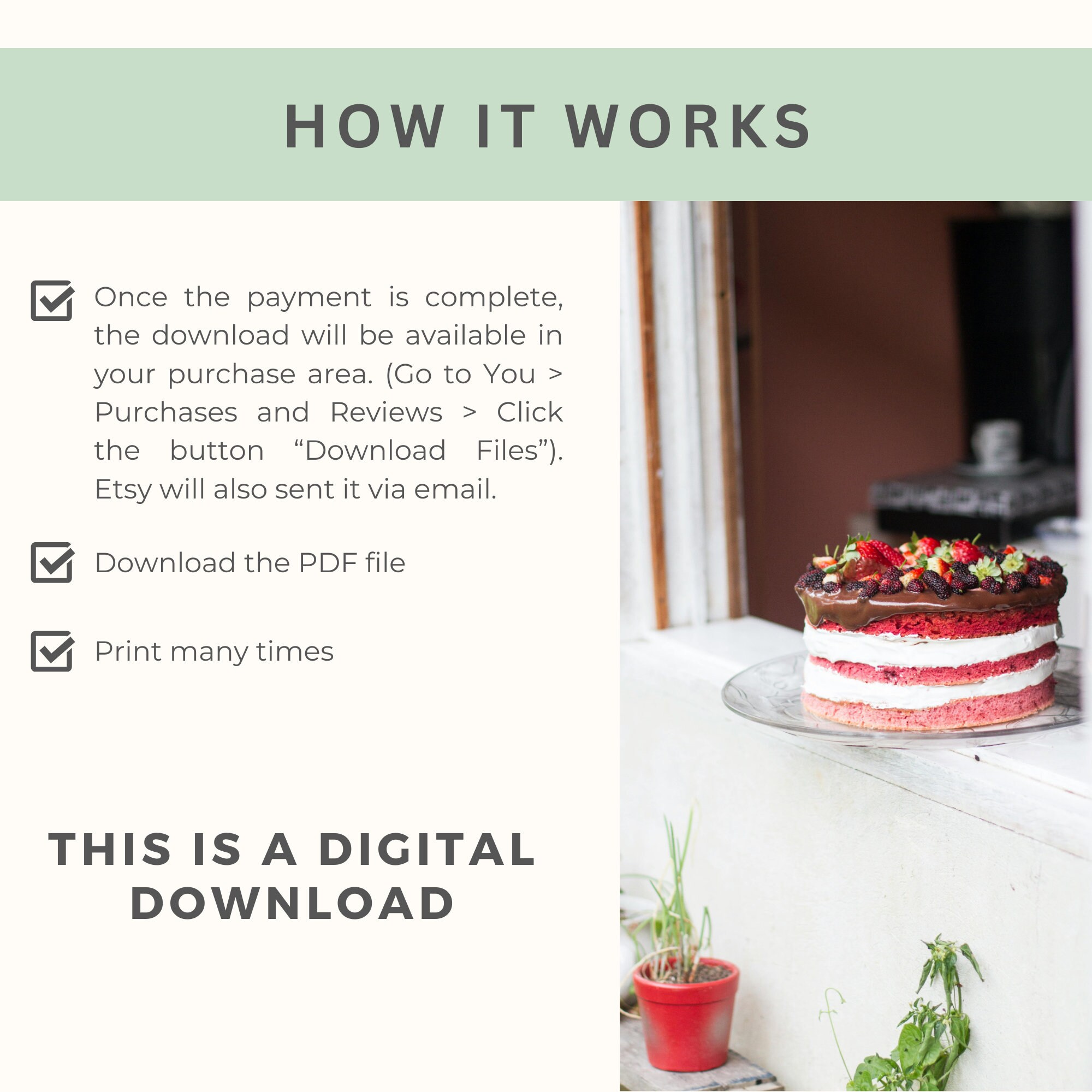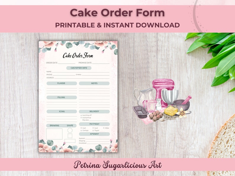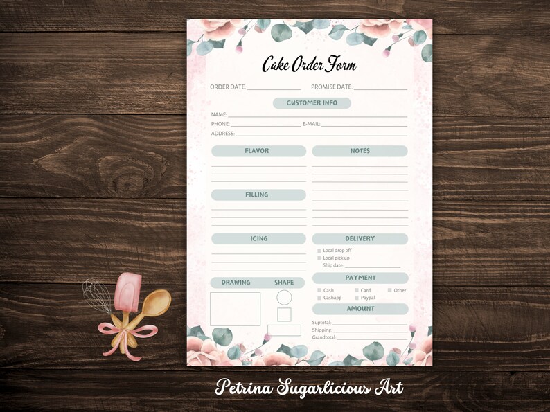 Printable Cake Order Form Blank Digital Download Cake Order Form