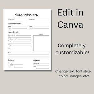 Editable CAKE ORDER FORM Printable Cake Order Form Template Etsy Canada