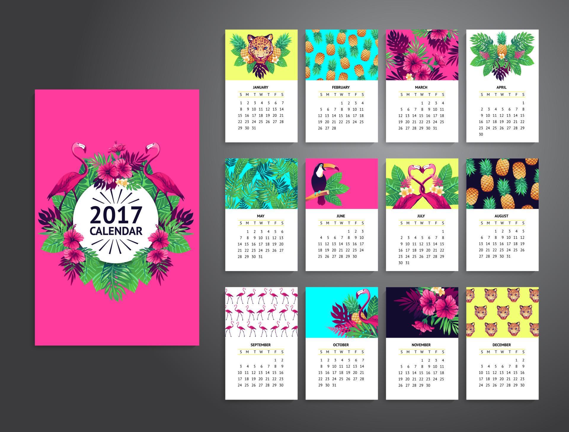 Tropical printable calendar 2017 13524435 Vector Art at Vecteezy