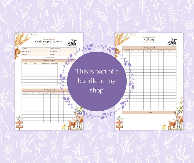 Cattle Keeping Records Sheet Printable PDF Cattle Management Cattle
