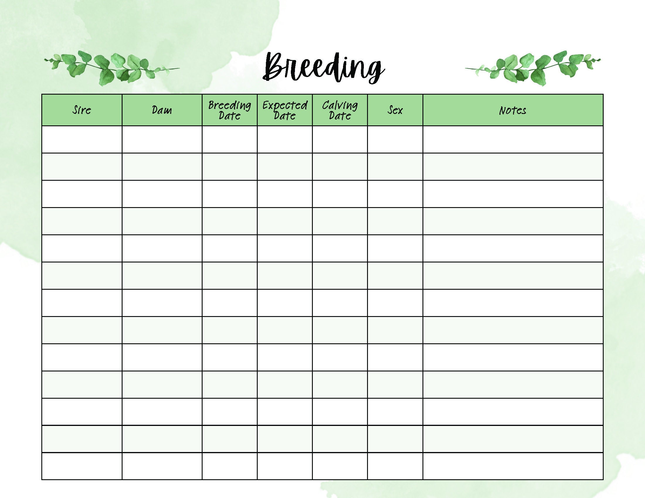 Cattle Livestock Record Keeping PDF Printable 11 X 8 5 Etsy