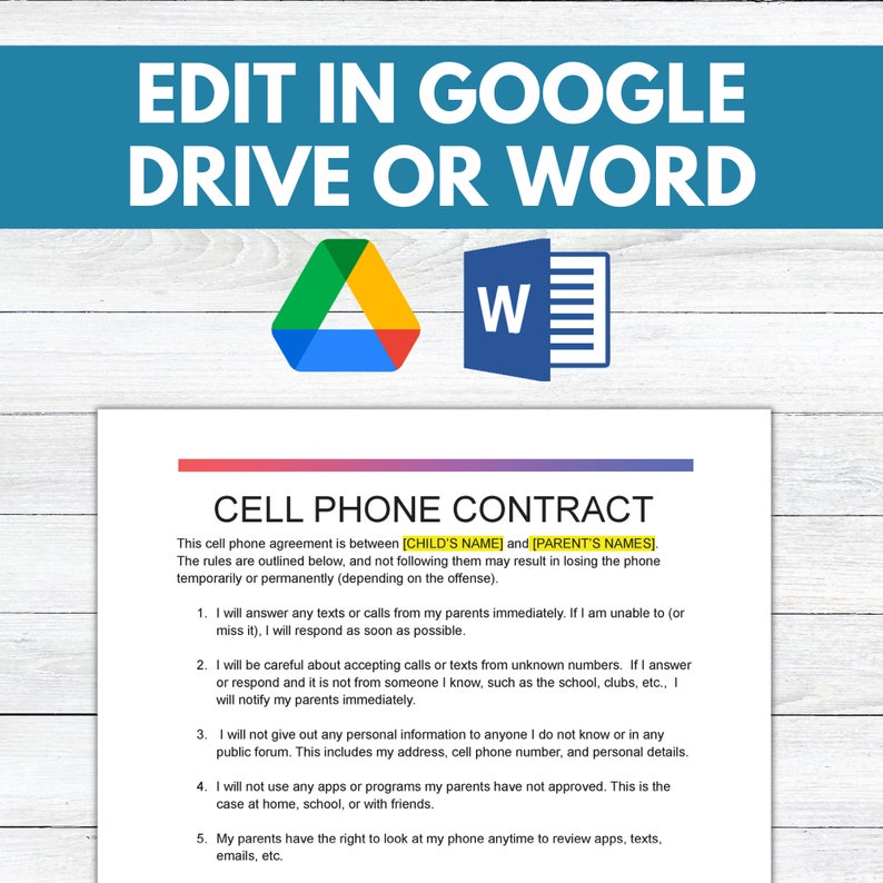 Editable Teen/kids Phone Contract Cell Phone Contract Template Cell