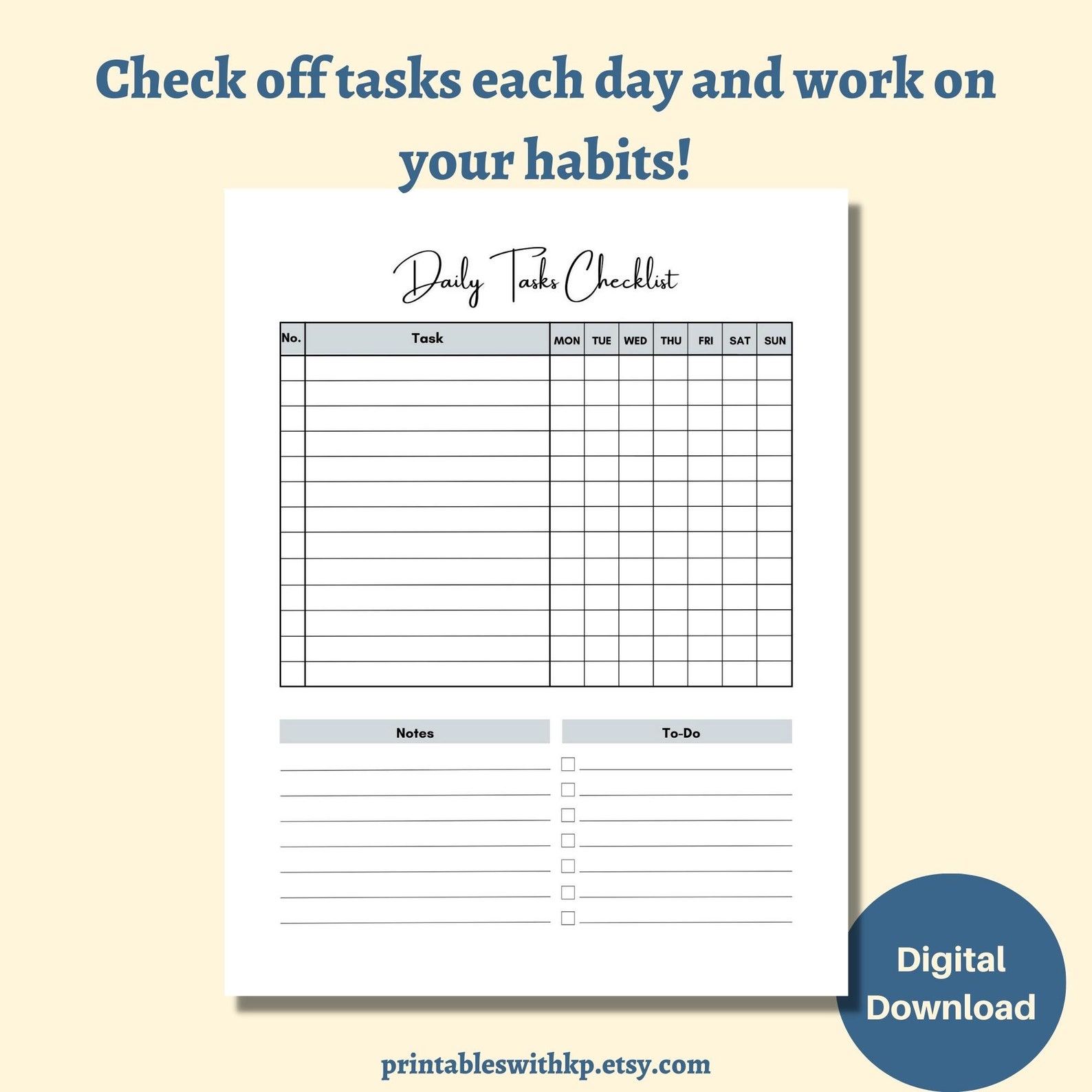 Daily Task Checklist Printable Template Graphic by JUNDI · Creative Fabrica