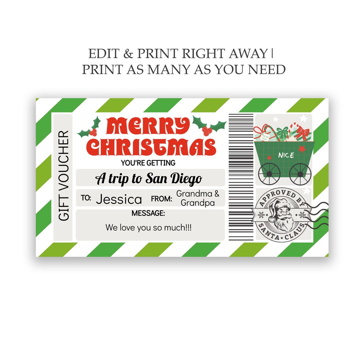Printable Christmas Gift Certificate Template Holiday Gift Etsy