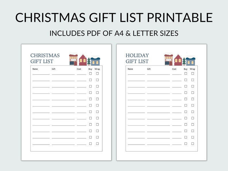 Christmas Gift List Printable Holiday Gift List Printable Etsy