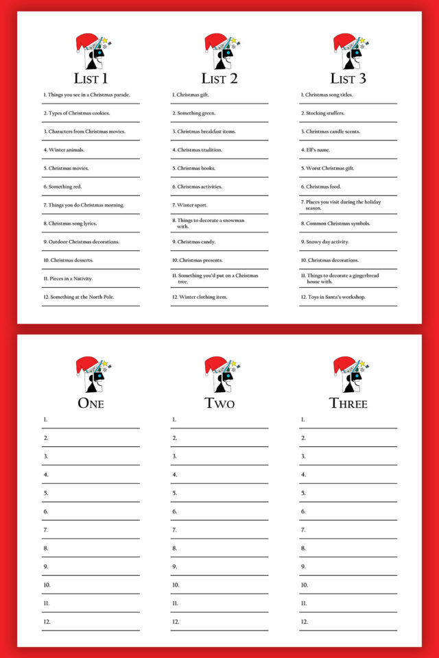 FREE Christmas Scattergories Printable (8 Lists ) Printable christmas