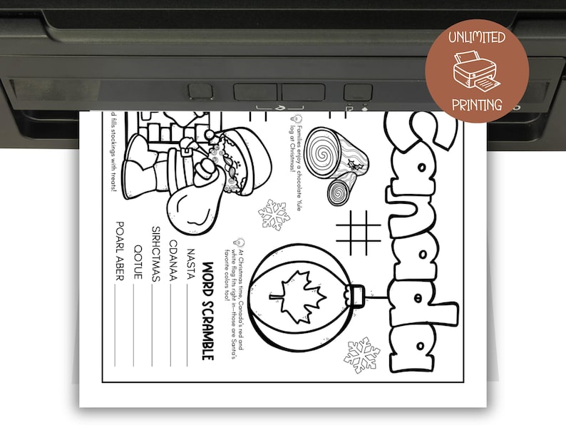 Christmas in Canada Kids Activity Sheet Printable Coloring Word