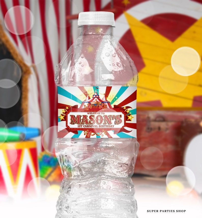 Circus Bottle Label Printable Circus Tent Birthday Party Etsy