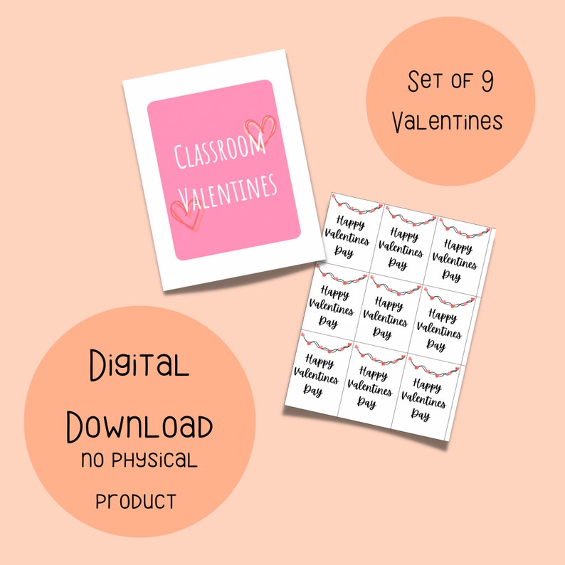 Printable Class Valentines Valentine Party Tag Valentine Instant
