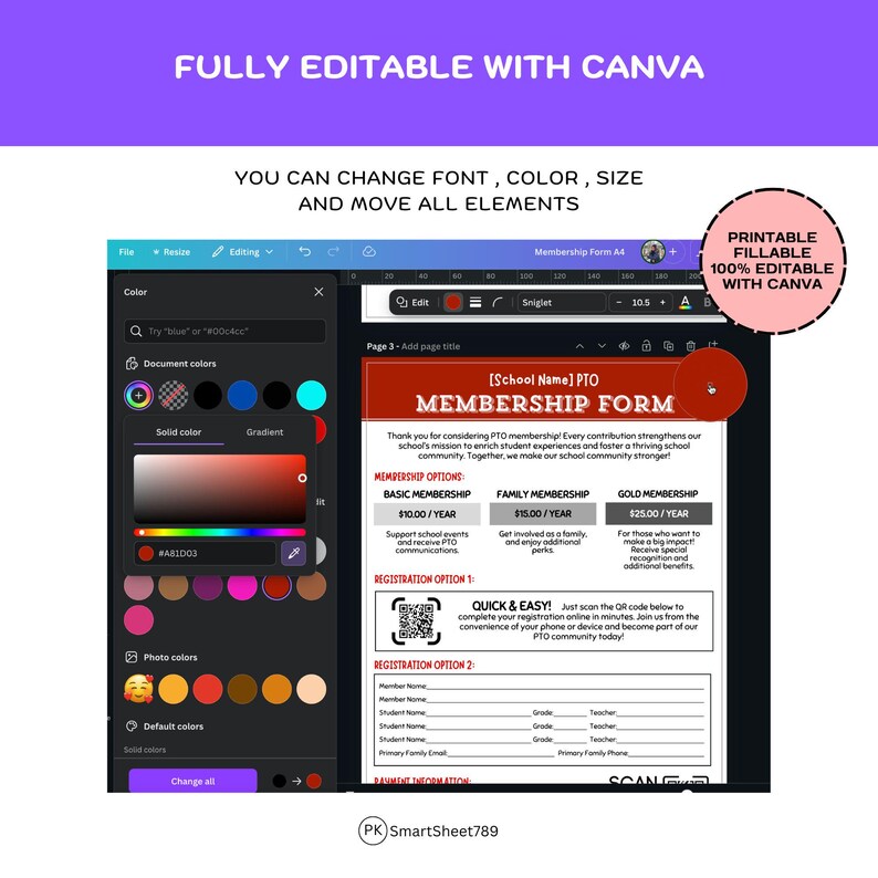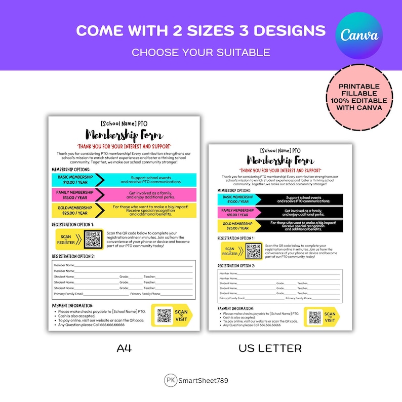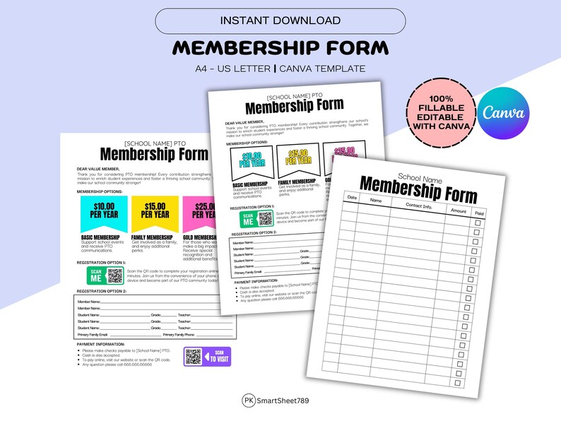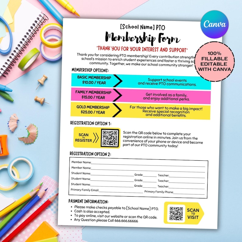 Editable PTO PTA Membership Form Flyer Template (CANVA) Etsy