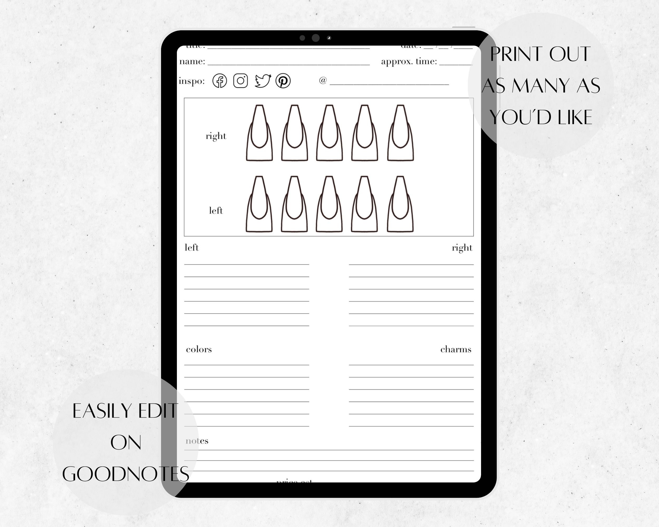 Coffin Nail Template Content Creator Nail Planner Acrylic Nail Art