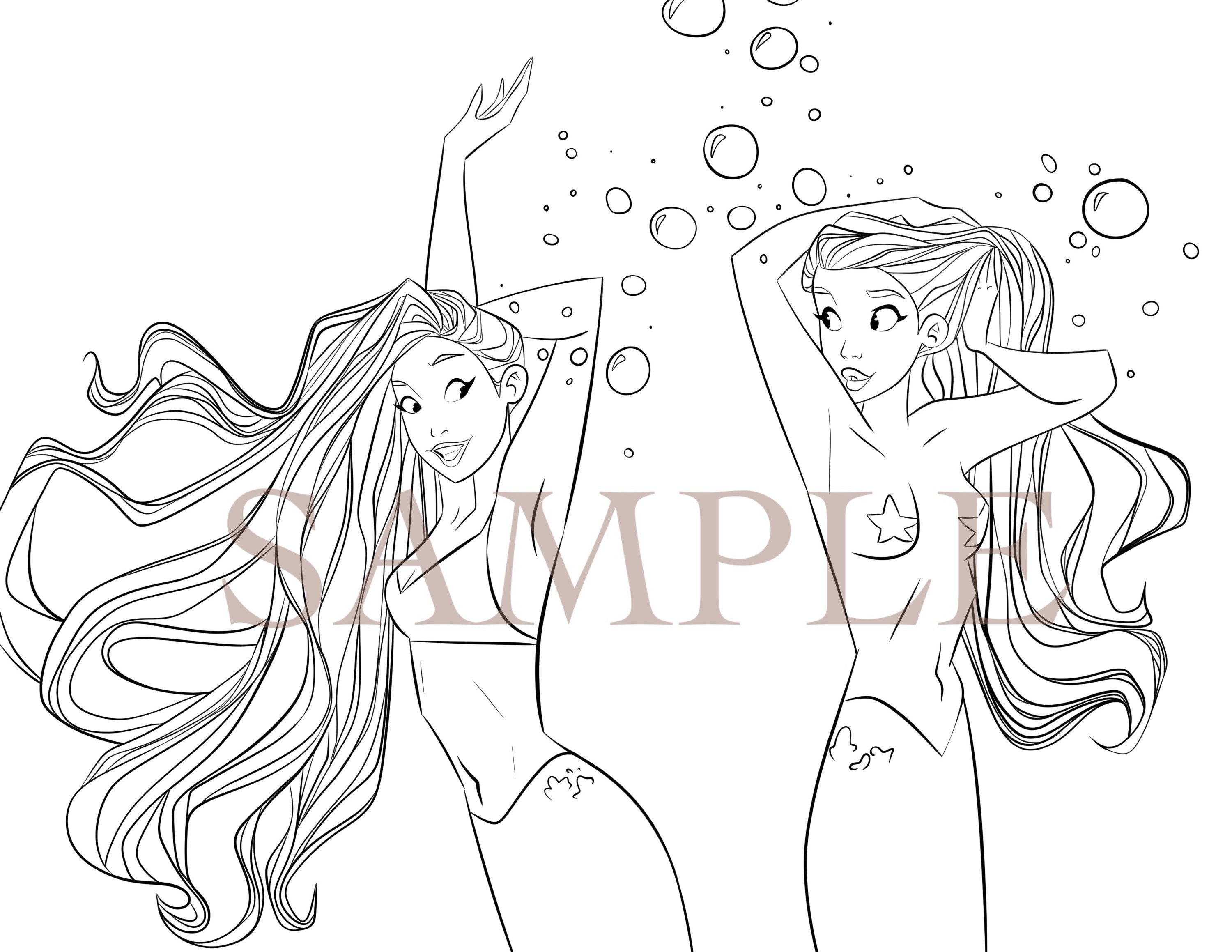 Mermaid Coloring Pages 12 Printable Mermaid Coloring Pages Etsy
