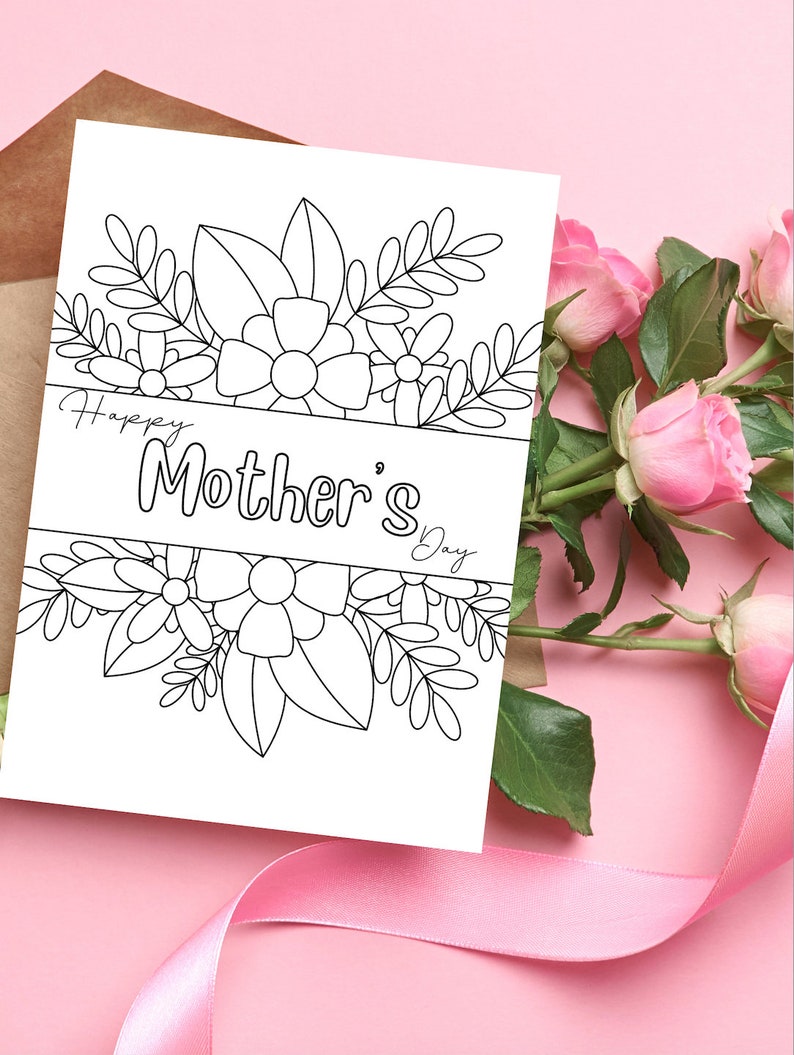 Printable Coloring Mothers Day Card Digital Download Coloring Etsy