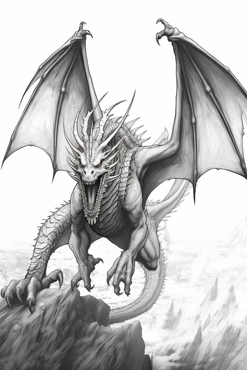 50 Gothic Dragons Coloring Pages grayscale Coloring Sheets Adults