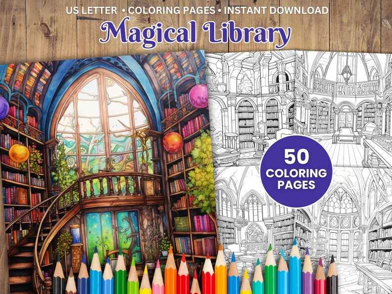 50 Magical Library Coloring Pages Fantasy Coloring Book Enchanted