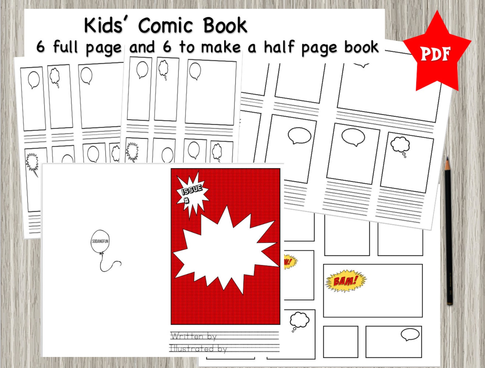 Printable Comic Book for Kids Full Page Comic Blanks Half Etsy