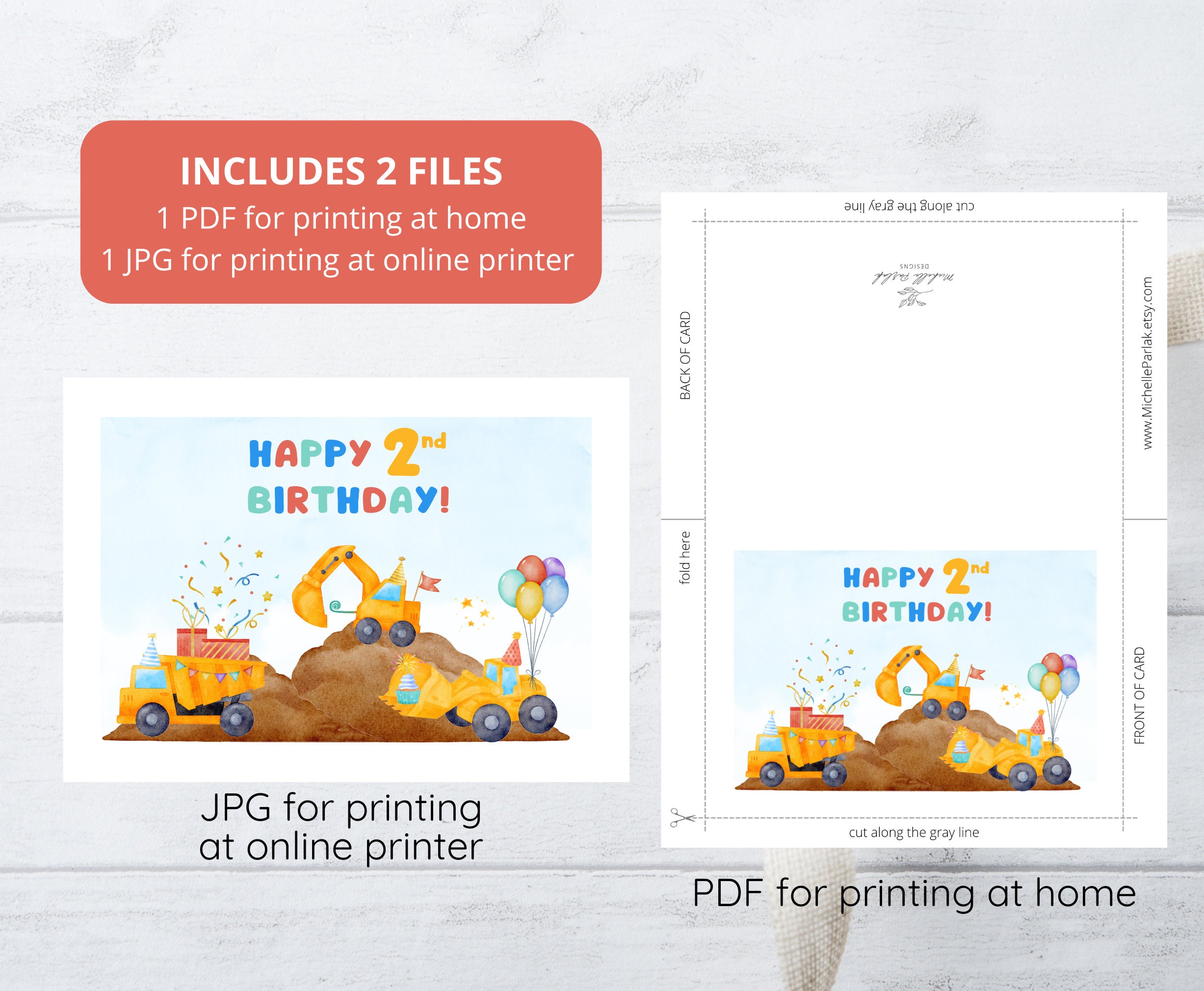 Printable Construction Truck Birthday Card for 2 Year Old Etsy