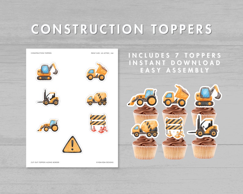 Construction Cupcake Toppers Printable Construction Truck Birthday
