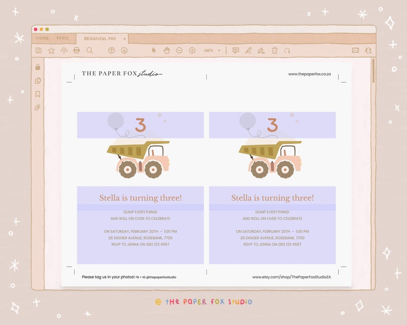 Printable Construction Truck Invitation Editable PDF Dump Etsy