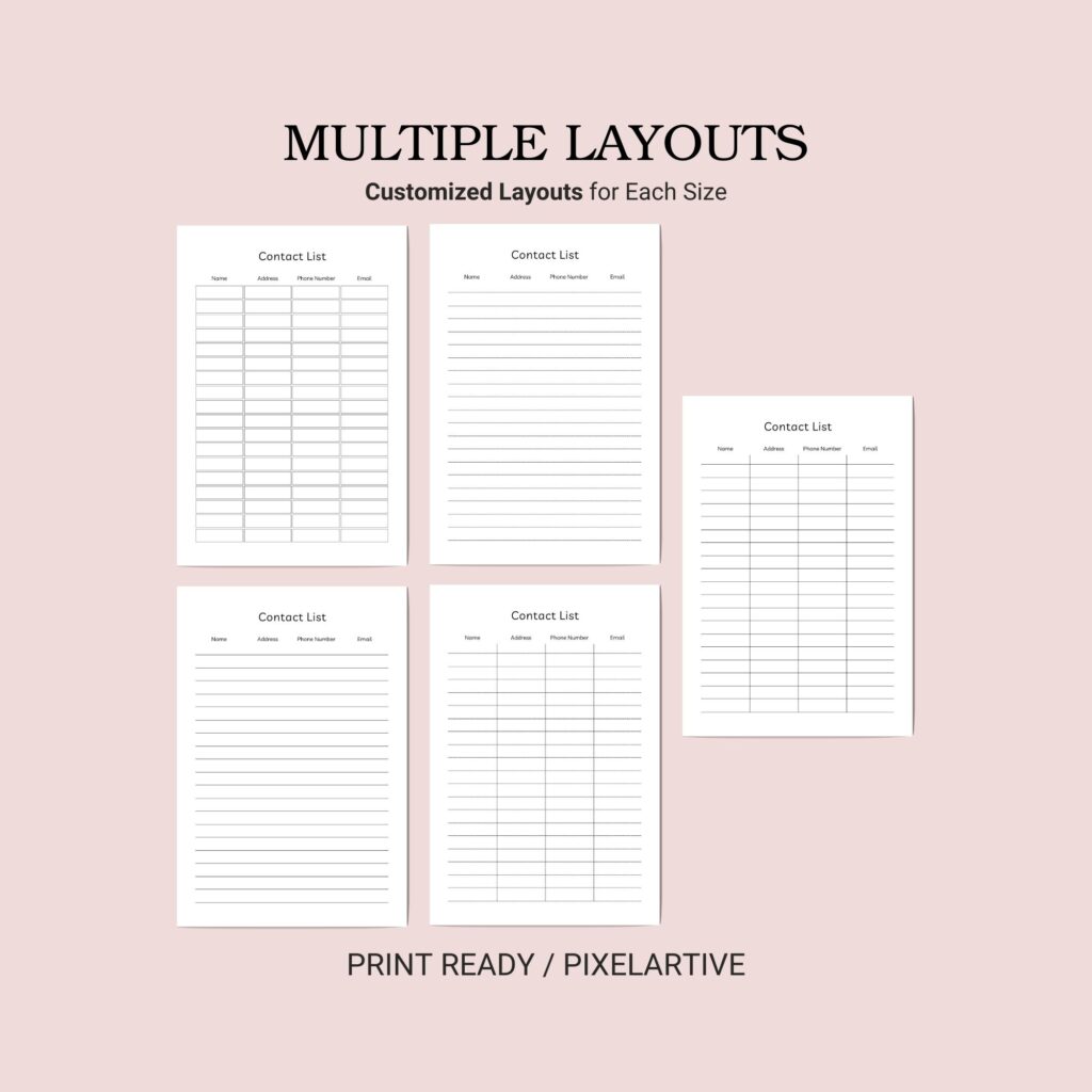 Contact List Printable Instant Download PDF A4 and US Letter Plan