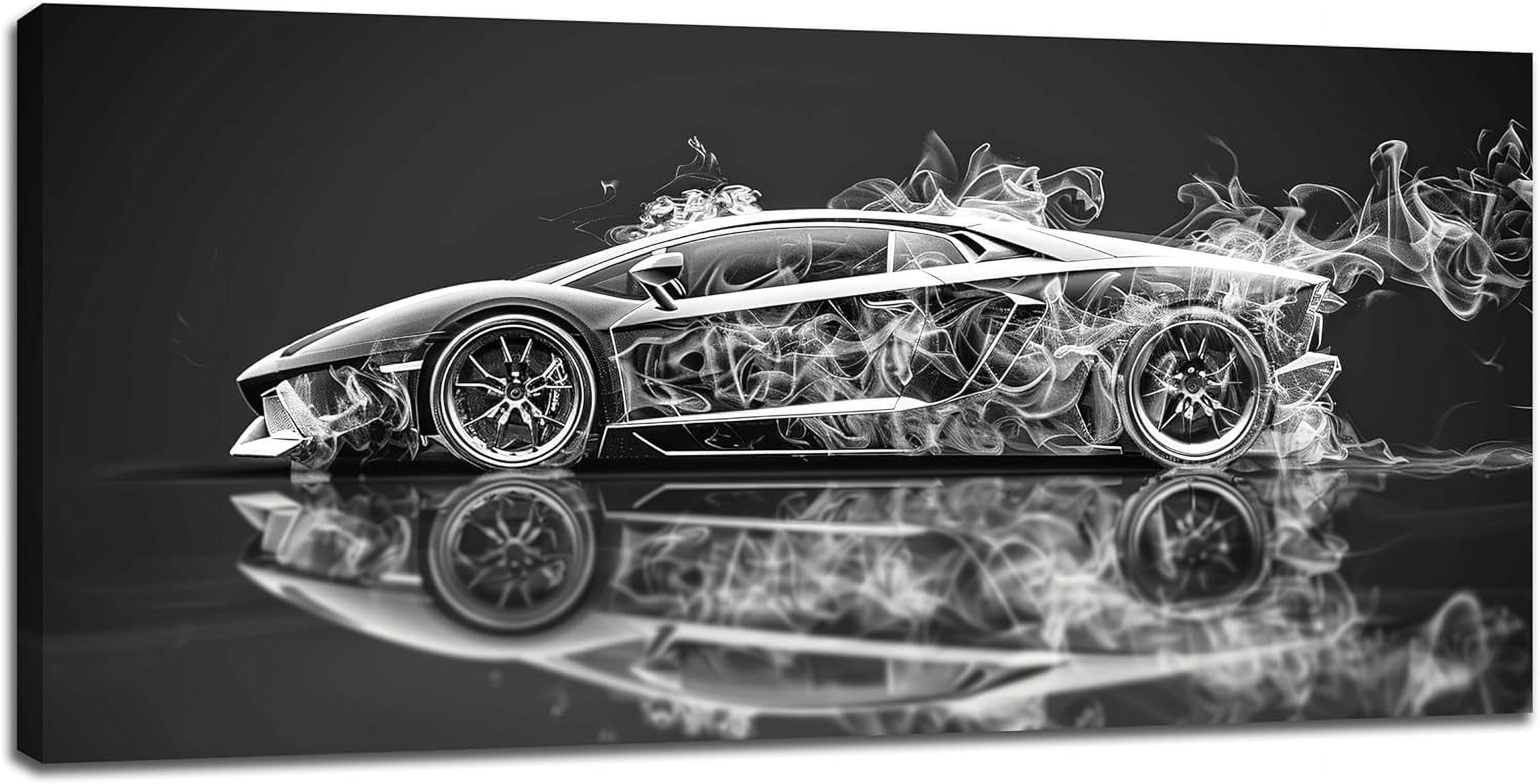 AEFER Car Wall Art Cool Black and White Smoke Posters Pictures Wall