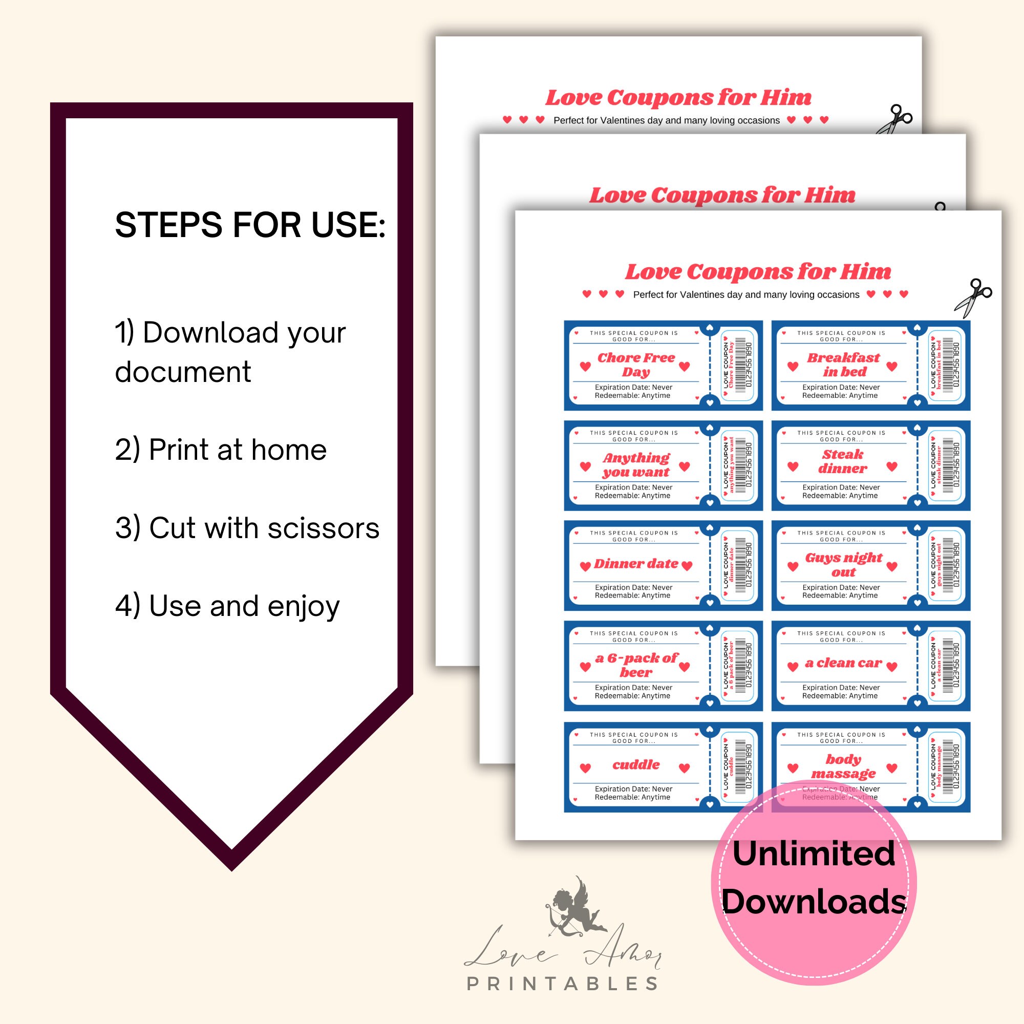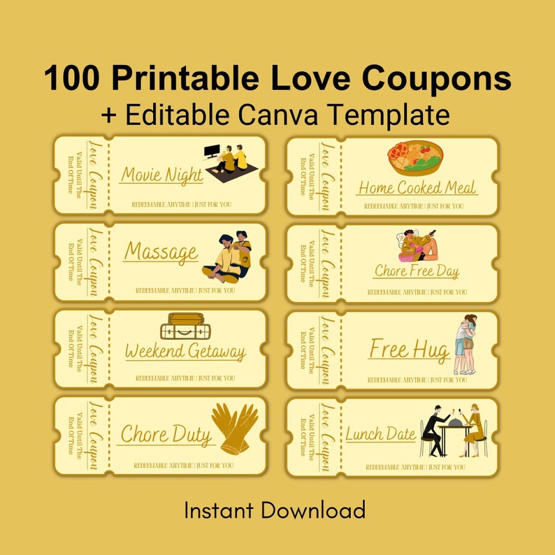 100 Printable Blank Love Coupons for Him and Her Couple Coupons