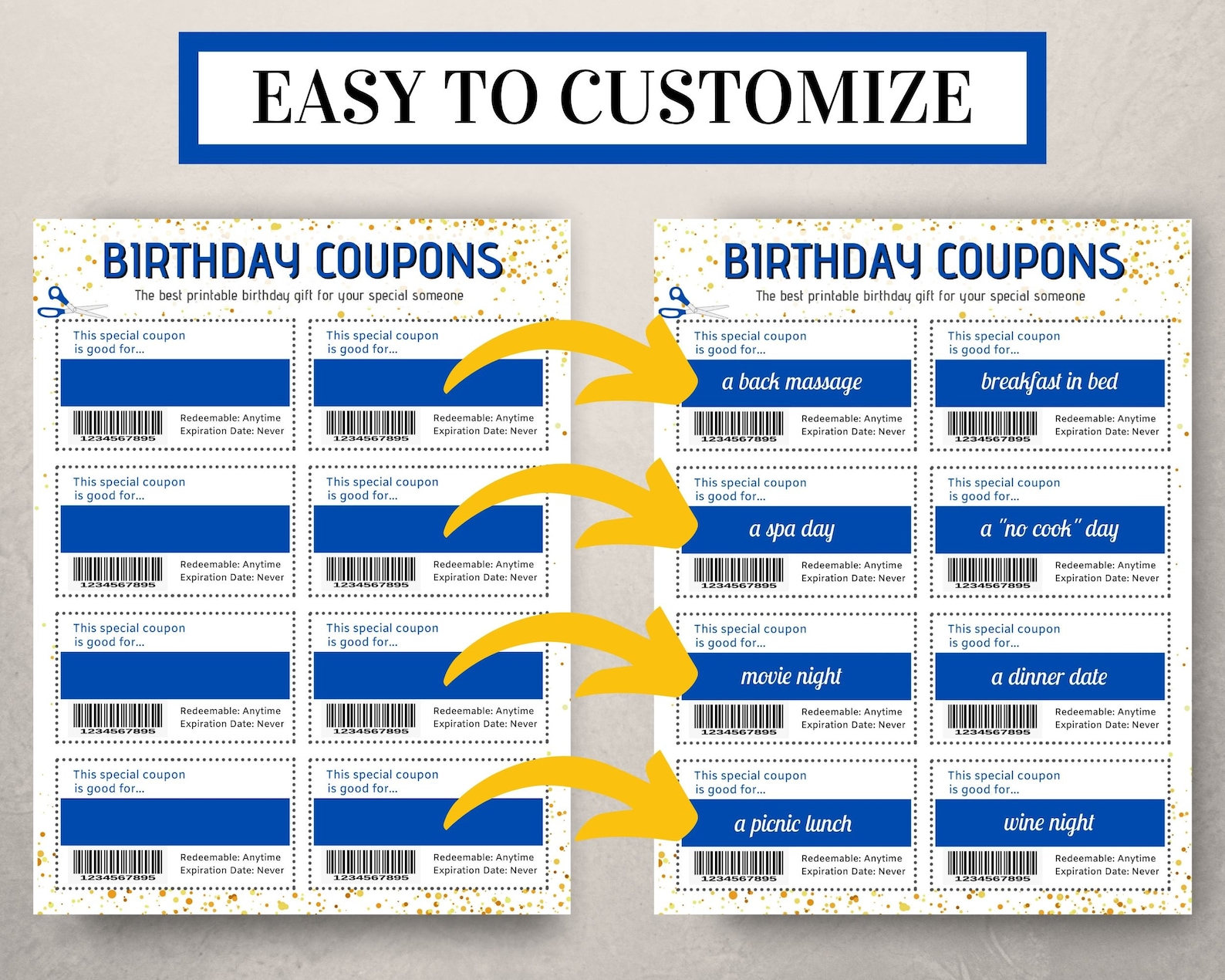 Printable Birthday Coupons (editable PDF) Instant Download Etsy