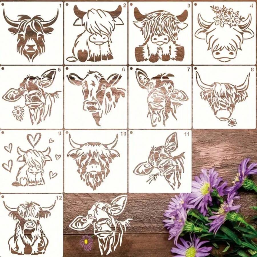 12pcs COW Cow Head Farm Animal Cow Print Stencils For Crafts Rock Paint