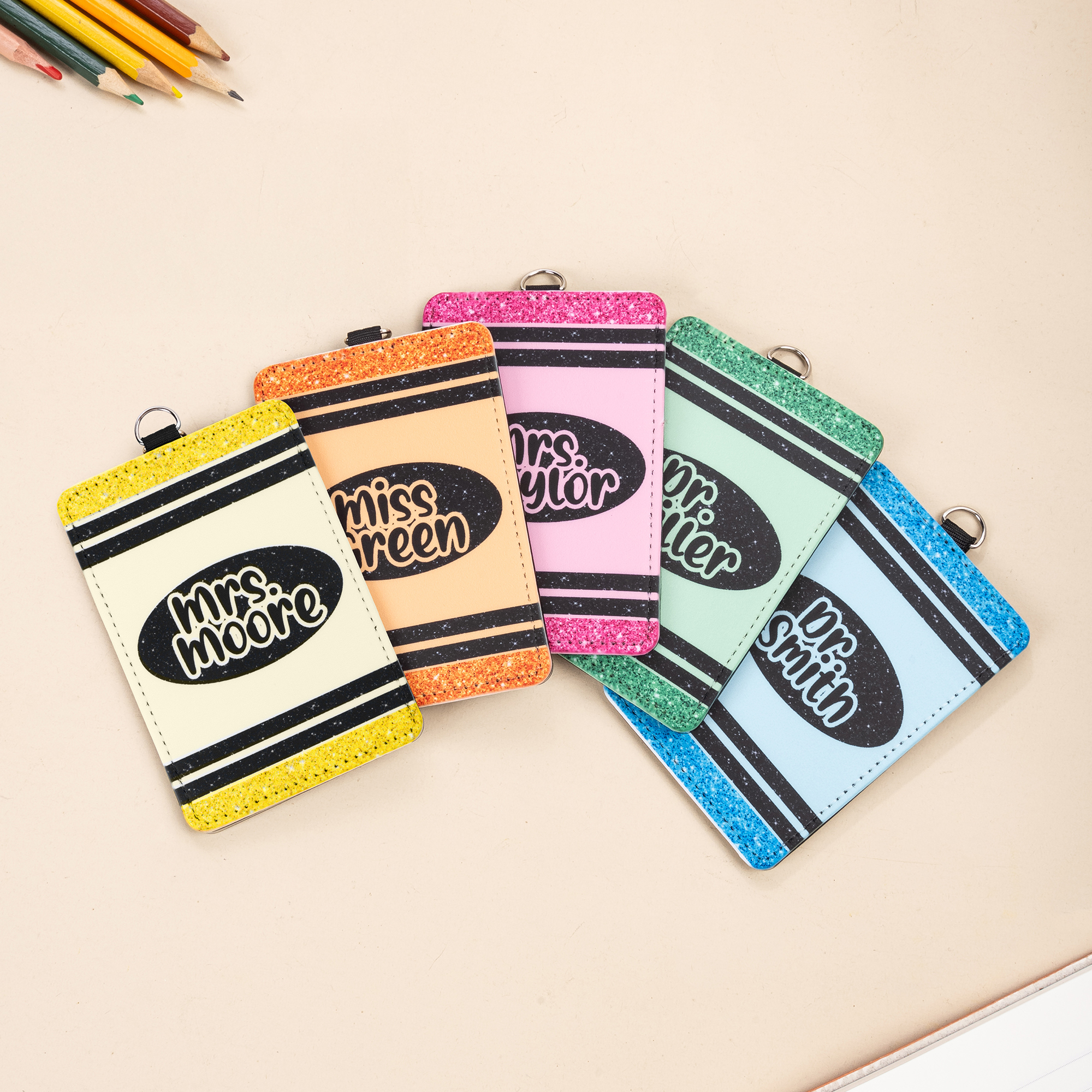 Personalised Multicolour Crayon Design Card Holder with Text Back to