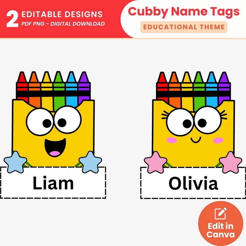 Crayon Name Tags EDITABLE PRINTABLE Crayon Name Tags Template