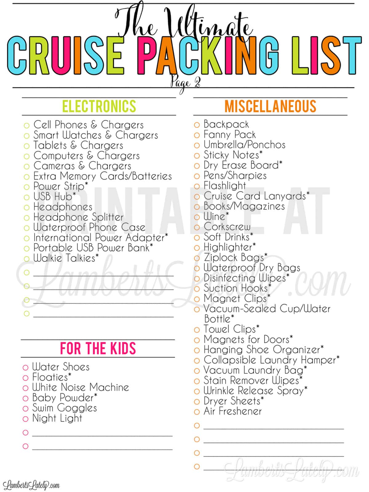 Printable Cruise Packing List FREE Printables