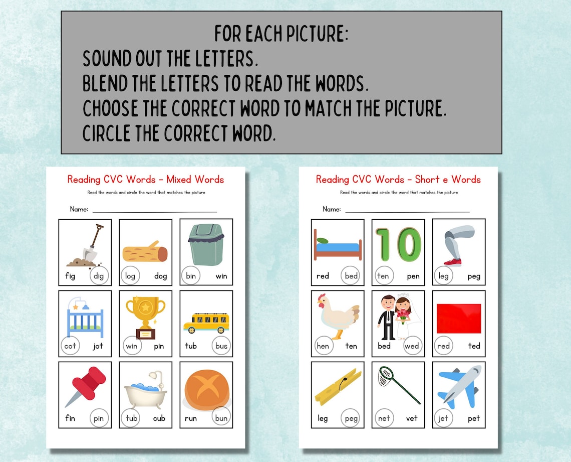 CVC Printable CVC Worksheets CVC Word Picture Cards Learn to Read