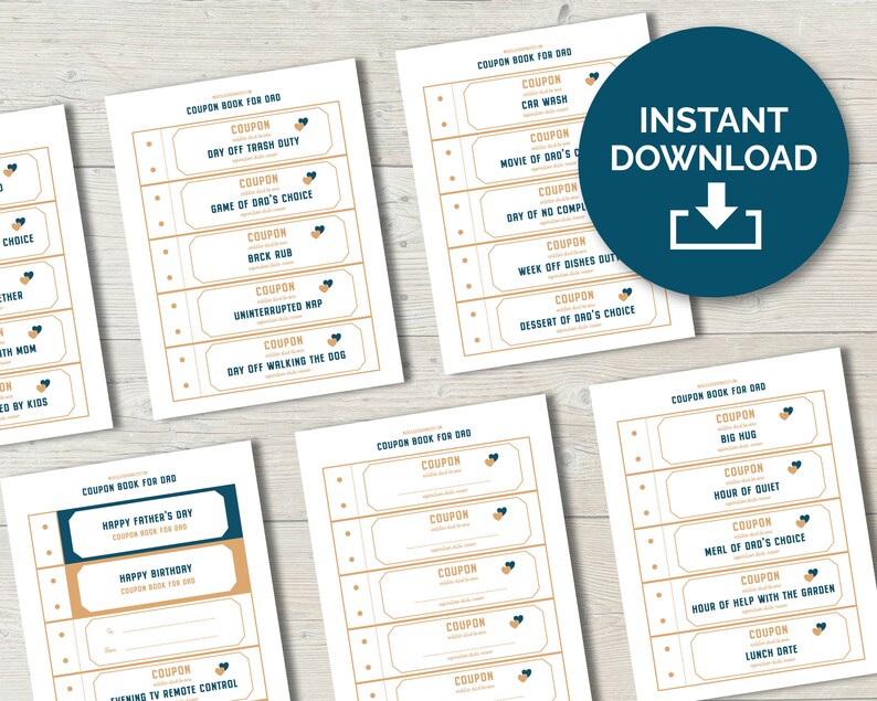 Birthday or Fathers Day Coupon Book Printable Dad Coupons Etsy