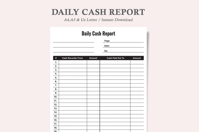 Daily Cash Sheet Printable