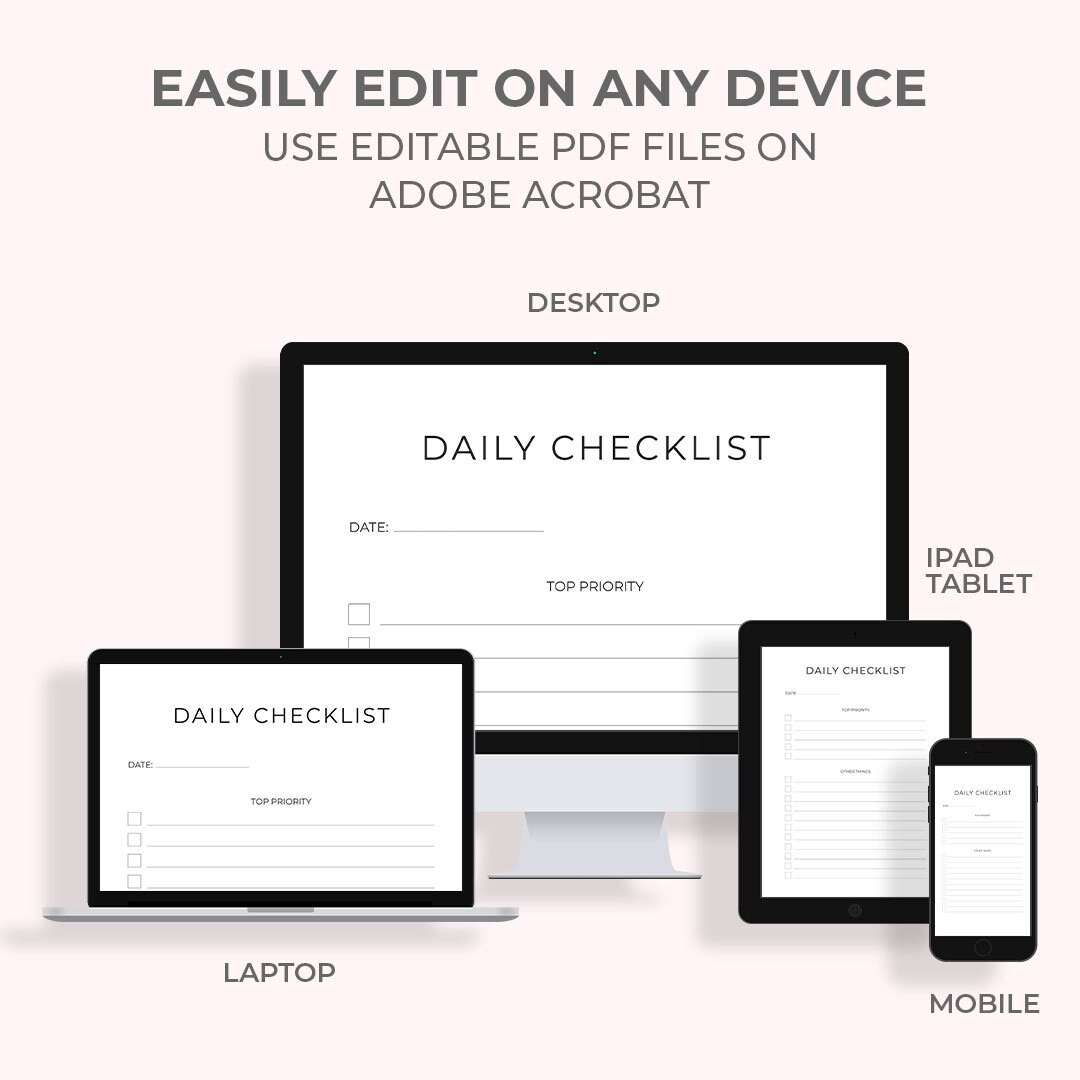 Daily Checklist Printable Fillable Daily to Do List Etsy Singapore