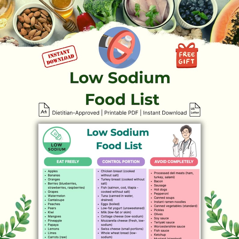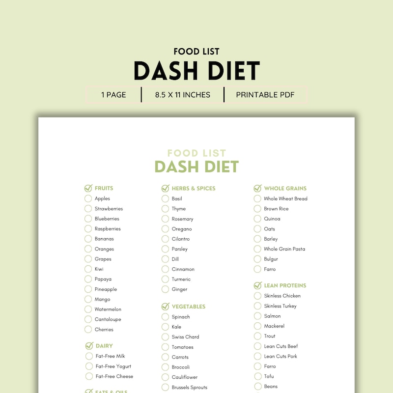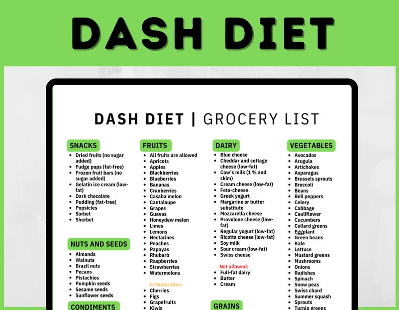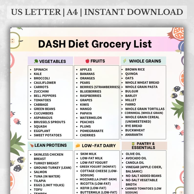 Low Sodium Food List Printable PDF DASH Diet Grocery Shopping List Etsy