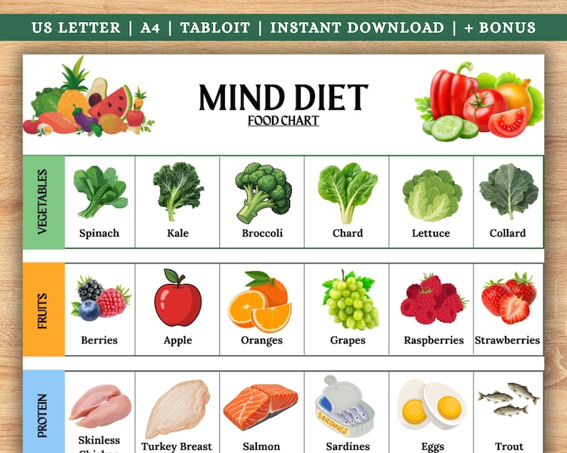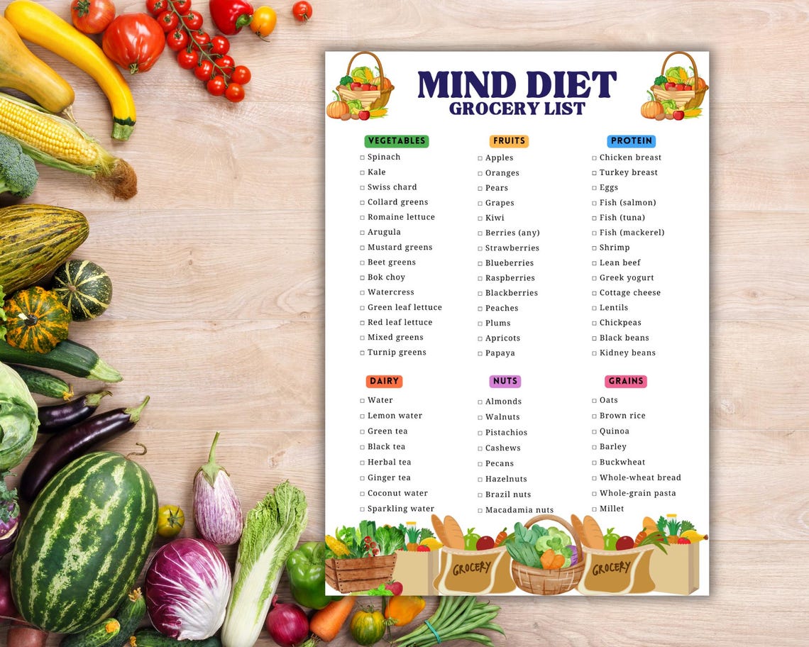 MIND Diet Grocery List PDF DASH Mediterranean Shopping List Printable