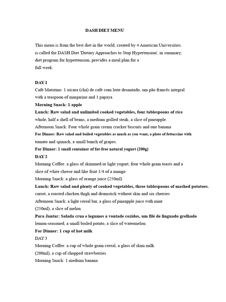 Printable DASH Diet 7 day Meal Plan Dietary Approaches to Stop