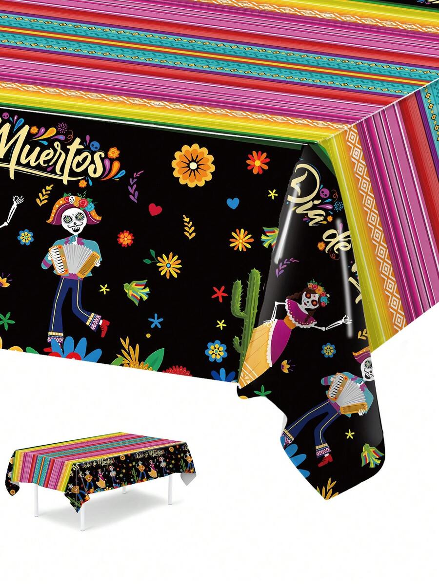 1pc Tablecloth Day Of The Dead Bride And Groom Sugar Skull Floral