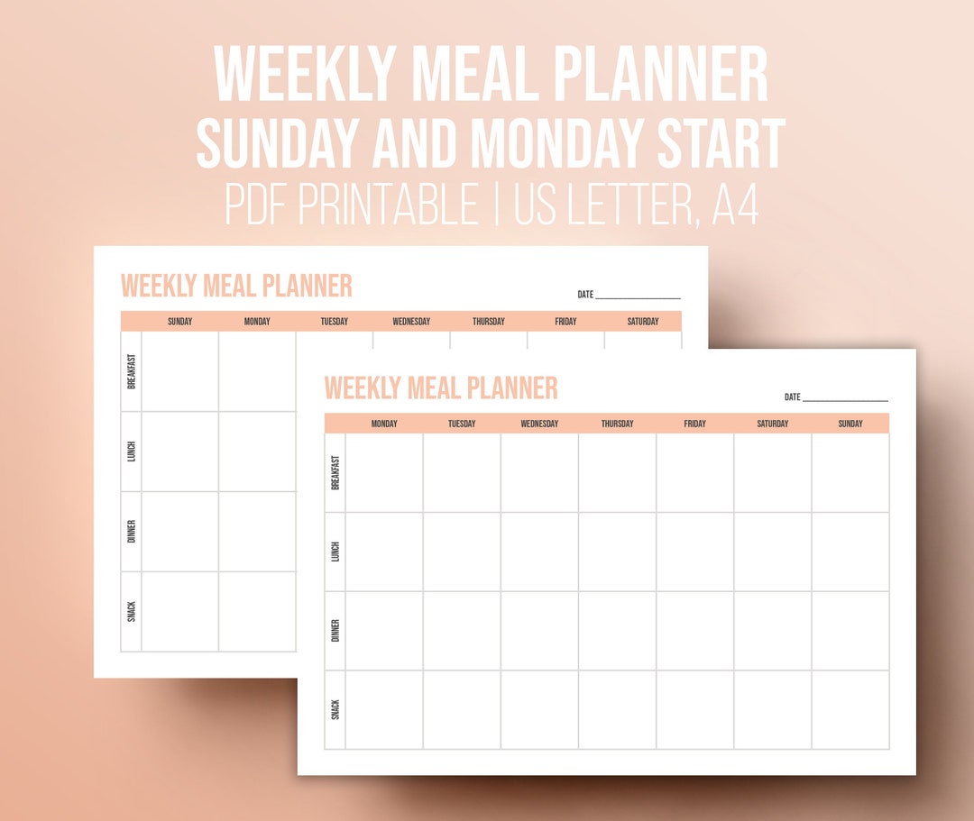 Weekly Meal Plan Printable Diet Planner Horizontal US Letter A4 Etsy