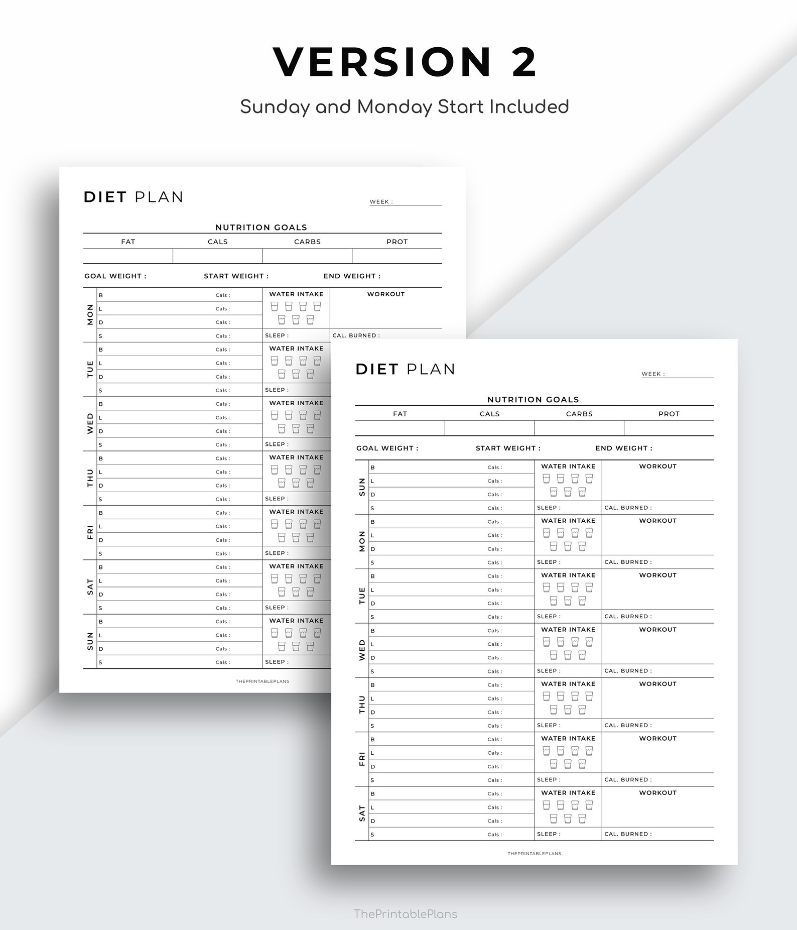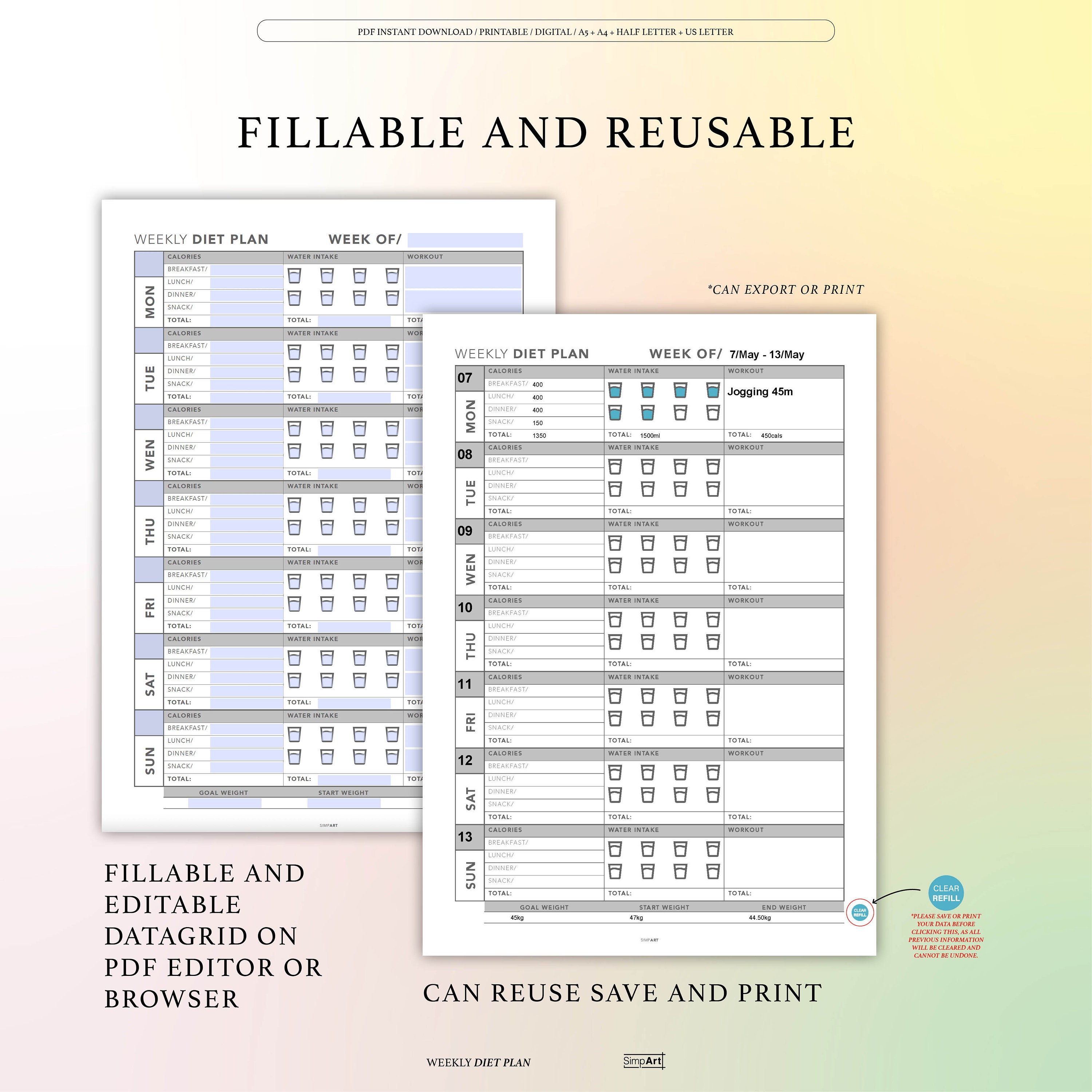 Downloadable Weekly Diet Planner Printable