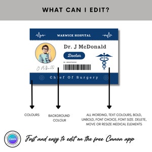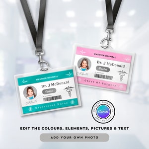 Doctor ID Badge Editable Hospital Staff ID Doctor Badge Id Etsy Australia