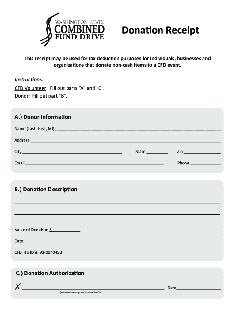 Fillable Online Donation Receipt Secretary of State of Washington Fax