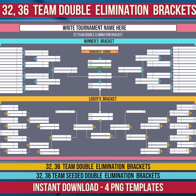 32 36 Double Elimination Brackets Printable Brackets Seeded Brackets