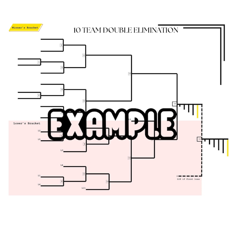 Printable 10 Team Double Elimination Bracket (All Sports Tournaments)